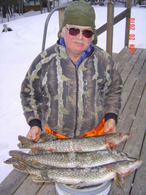 Gary Spencer ice fishing McDonald Lake 40" 19# Pik